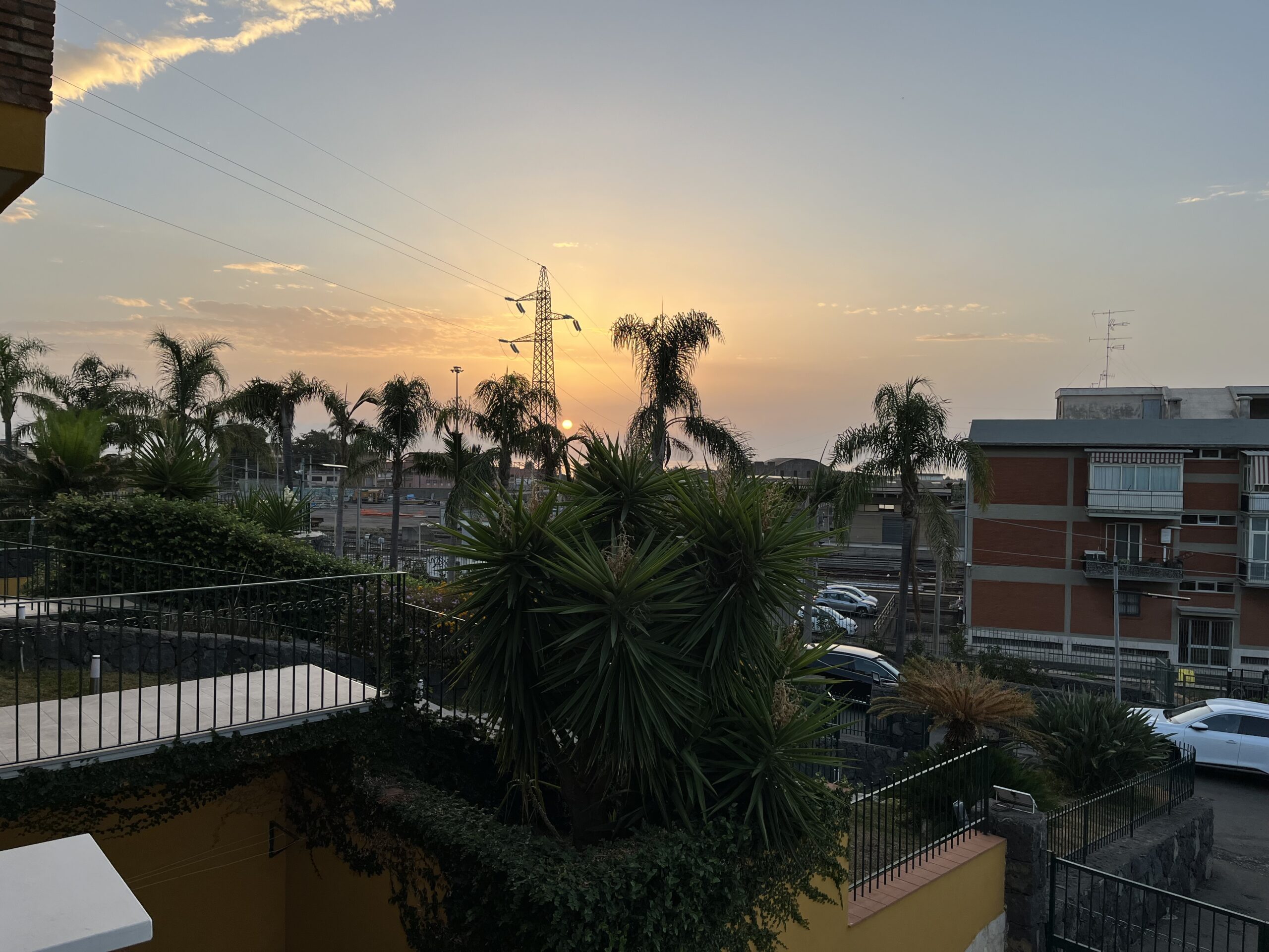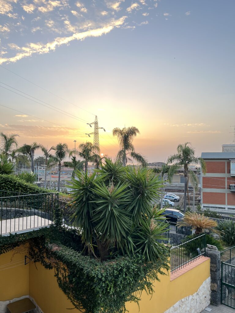 Der letzte Sonnenaufgang in Sizilien und Aufbruch nach Messina. Aber erst einmal frühstücken in Acireale mit Cappuccino und Cornetti von Creme.