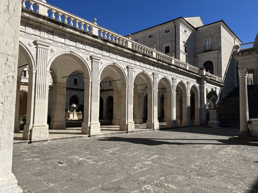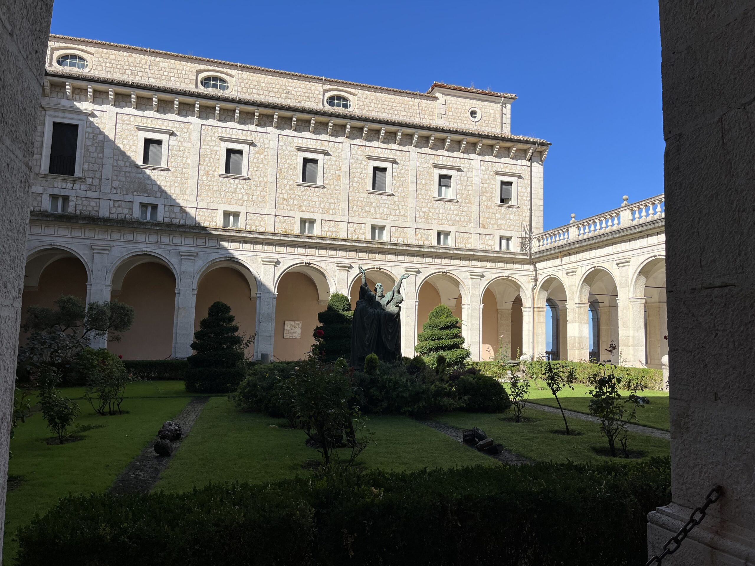 Die Abtei im 6. Jahrhundert erbaut. Im 2. Weltkrieg sinnlos zerbombt und zerstört und anschließend innerhalb 10 Jahren wieder erbaut und in die heutige Pracht gebracht. Möchte nicht wissen wie teuer…