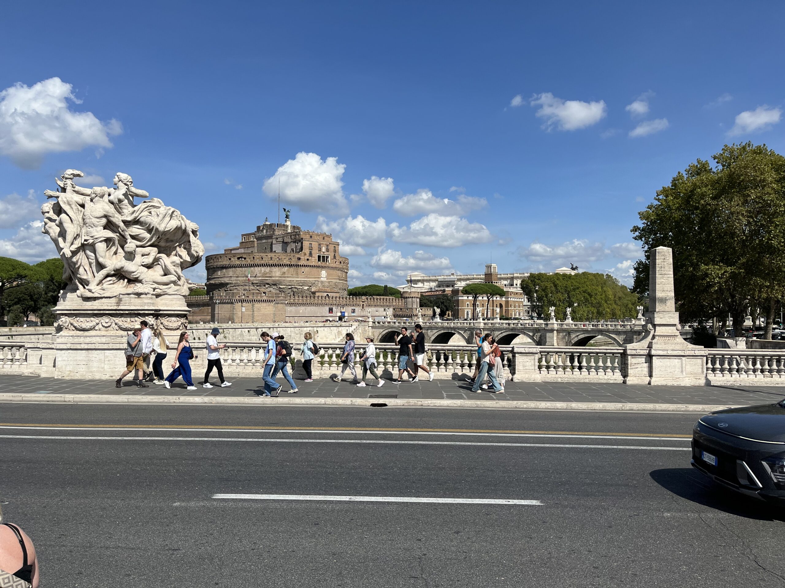 Wir am Piazza della Rotondo und dann ging’s über den Tiber…