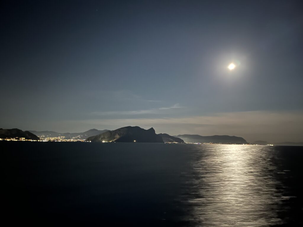 Nach doch langer Überfahrt entschädigt einiges… 🤩 Der Mond empfing uns mit seinem Glanz und kurz darauf die Sonne mit ihren eigenen Farben…