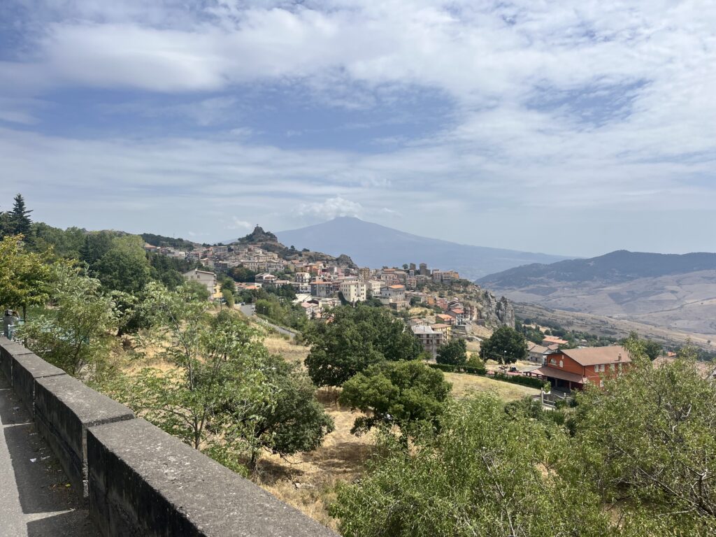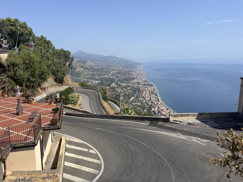 Unsere heutige Wegstrecke führte uns bis nach Gambarie. Von Forza d’Agro Blick voraus Richtung Messina und Blick zurück nach Taormina.