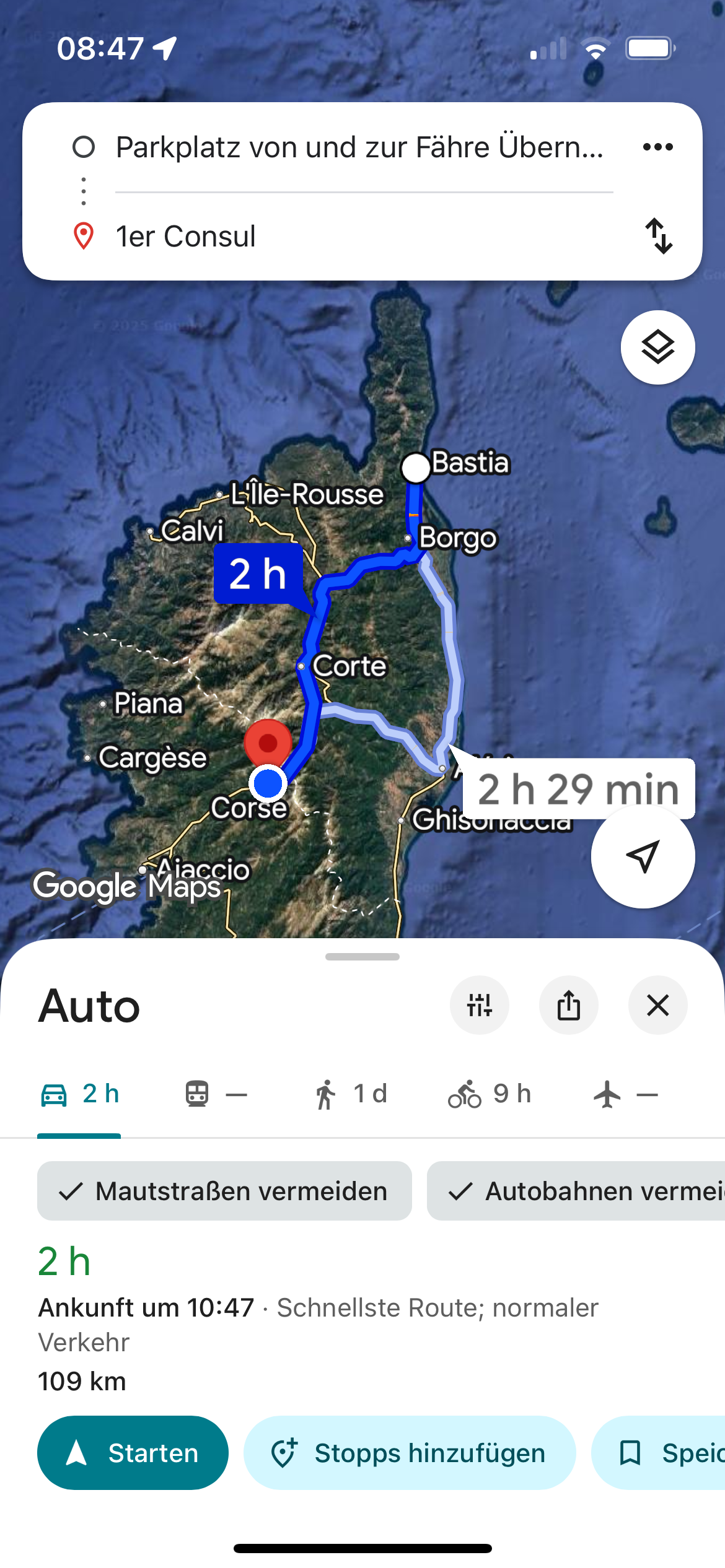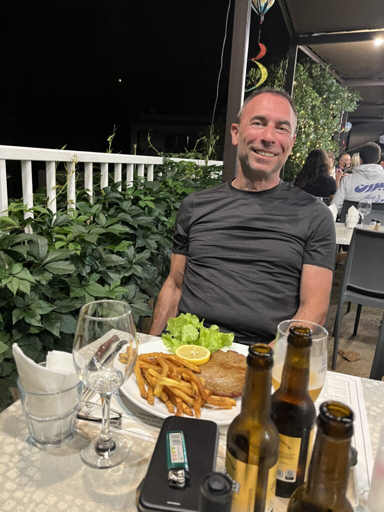 Durch starken Wind konnte Fähre erst sehr verspätet anlegen. Deshalb Unterkunft kurzfristig umgeplant.. wir sind ja flexibel… Deshalb Übernachtung mitten auf der Insel beim 1er Consul und lecker Essen im A Tanedda…