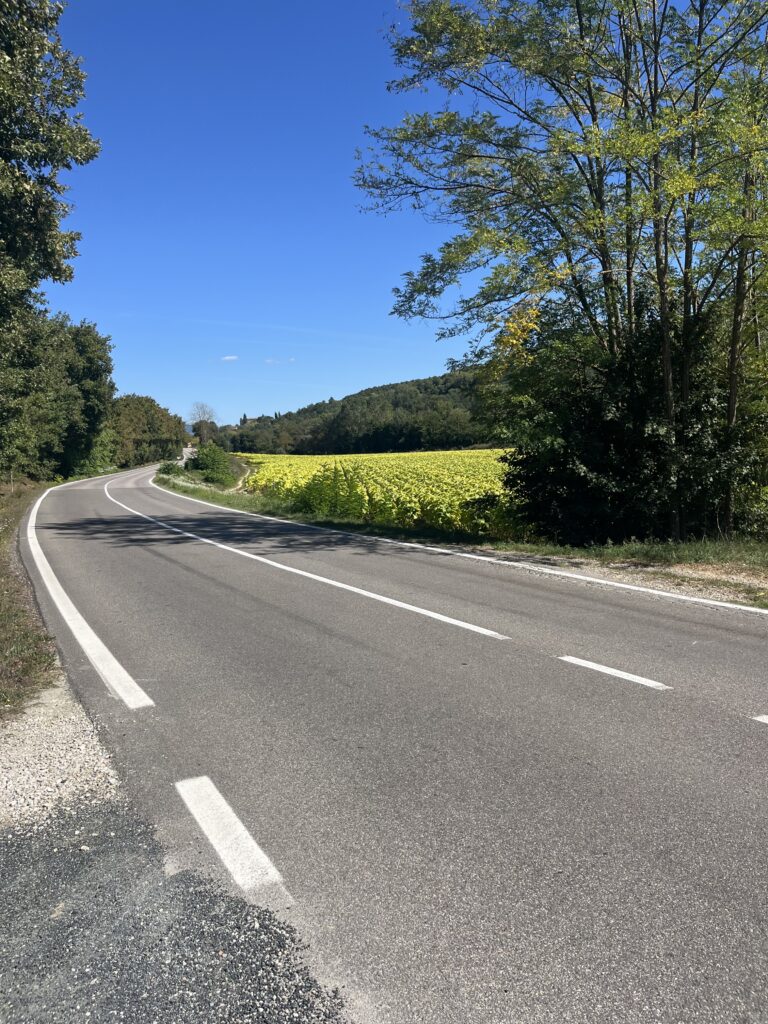 Dann ging’s hinter Cortona den Berg hoch und rechts ging eine Piste weg auf einen Monte wie auch immer, aber mit grandioser Aussicht auf den See. Geile Schotterstrecke. Dann den Berg wieder runter und Diskussion über die Pflanzen auf den Feldern. Na klar, Tabak. Und echt viel.