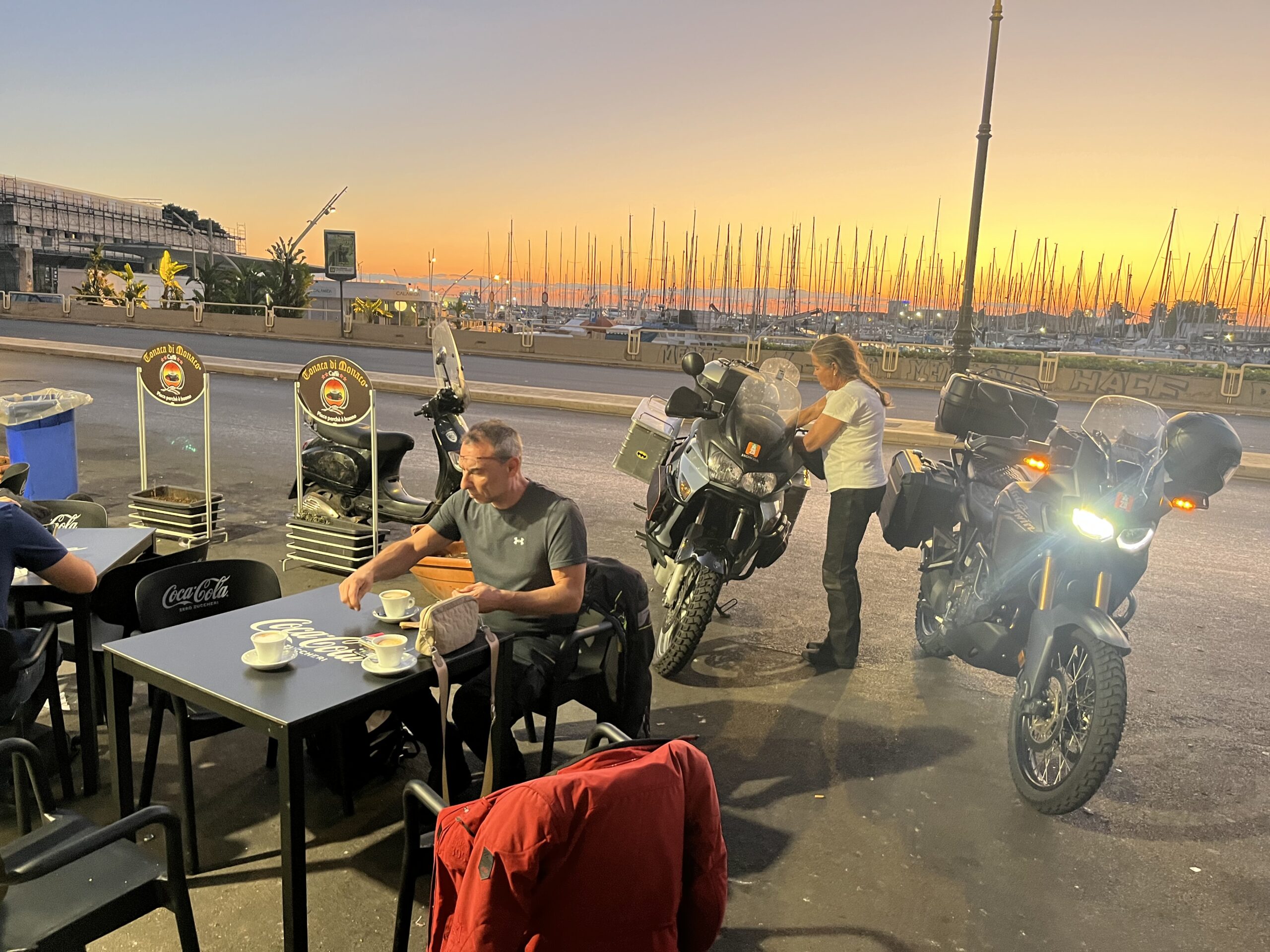Morgens um fünf raus aus dem Schiffsbauch und in die erste offene Bar am Hafen beim Capuche den Sonnenaufgang genossen.