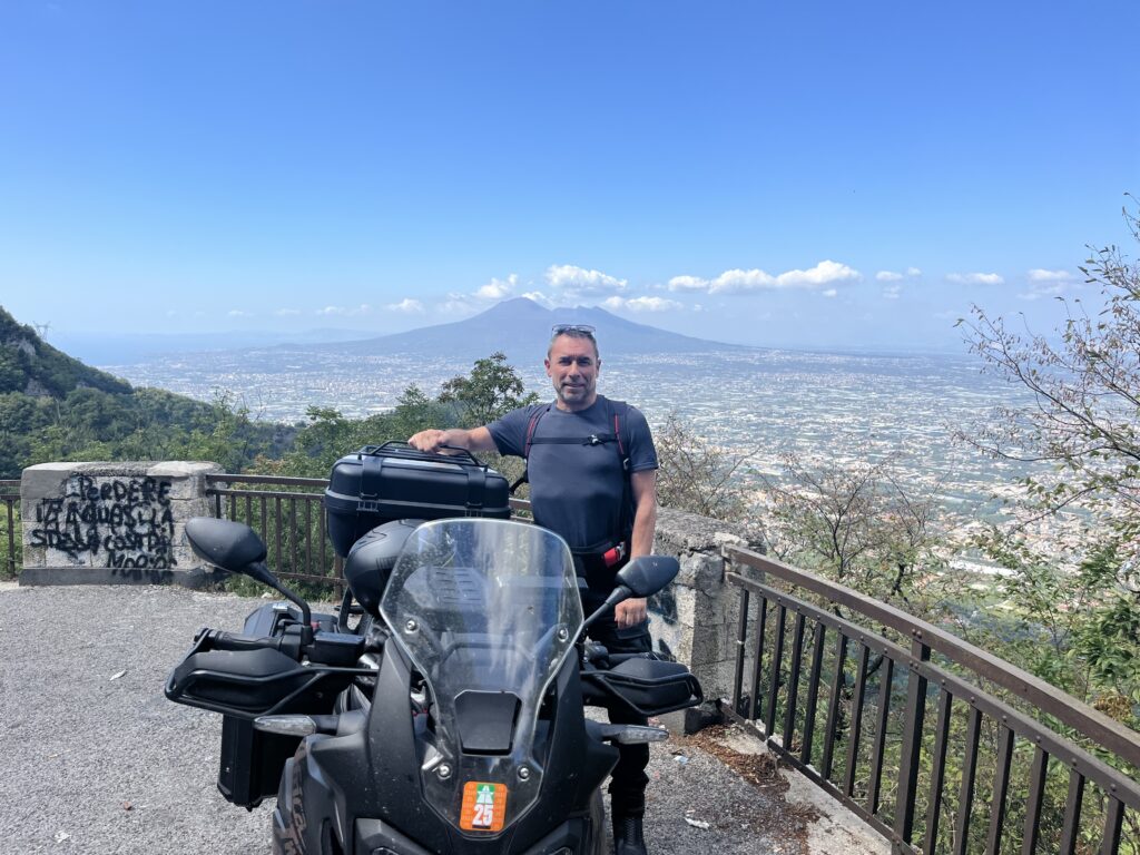 Die Fahrt hier rüber Richtung Neapel war nicht der Reisser. Die Landschaft wird so 1h vor dem Meer wieder grüner und dann gehts Mords den Berg hoch, bei Corbara. Bockstark. Tolle Aussichten auf den Vesuv. Dann runter an die Amalfiküste. Da steppt der Bär. Eng, schmal, laut und lauter verrückte Rollerfahrer. Und immer wieder kommen einen Busse entgegen🫣. Ampeln hat’s, Gegenverkehr geht manchmal nicht.